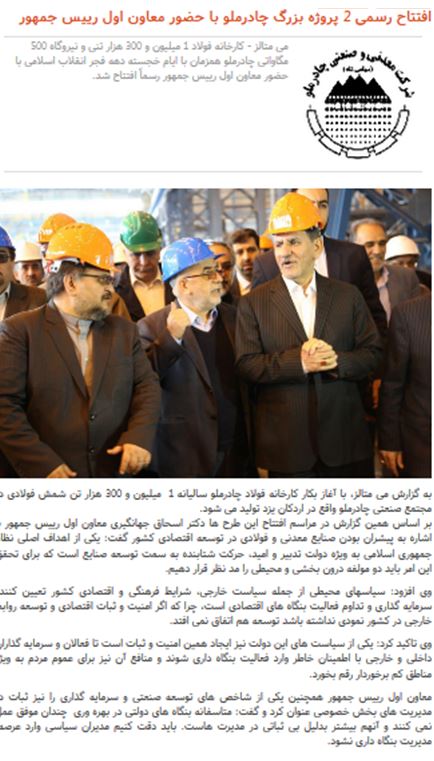 افتتاح کارخانه فولاد چادرملو در استان یزد
